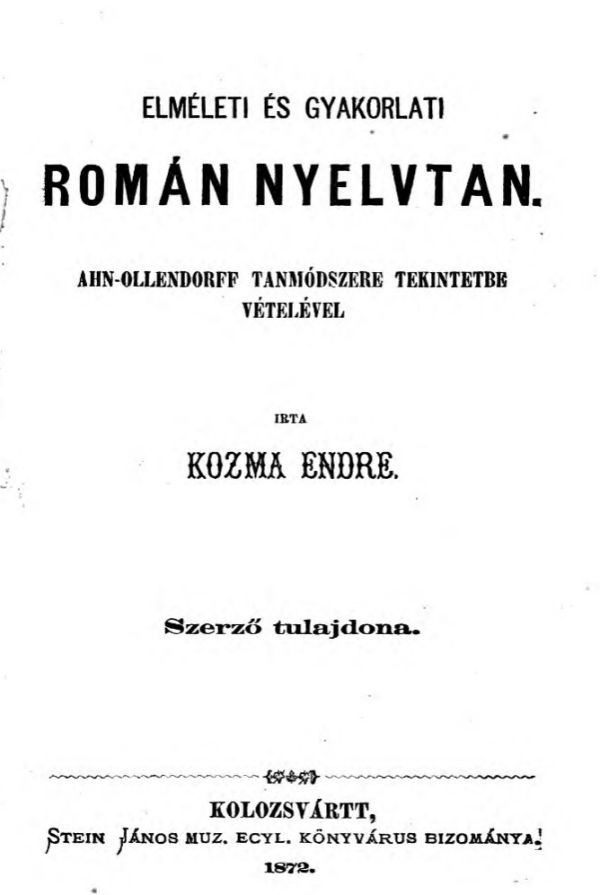 Elméleti és gyakorlati román nyelvtan, Kozma Endre, 1872