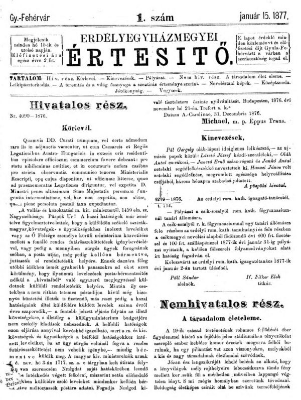 Erdélyegyházmegyei Értesítő, 1876–1877