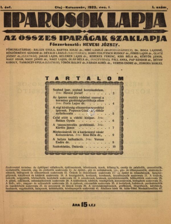Az összes iparágak szaklapjaként határozta meg önmagát, megjelent Kolozsváron az 1920-as évek elején. A szövetkezeti mozgalom egyik szorgalmazója. Főszerkesztő: Hevesi József asztalosmester.