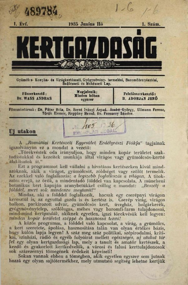 A kolozsvári Kertgazdaság c. szakfolyóirat (1935-37) főként a virágtermesztés kérdéseit tartja szem előtt. Forrás.