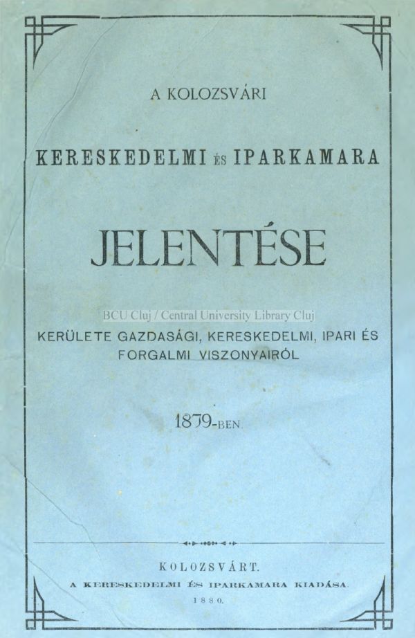 Forrás: Báthory Lajos: Gazdasági élet és iparfejlesztés a Kolozsvári Kereskedelmi és Iparkamara hatósági kerületén (1868–1900). In. Pál Juditt - Sipos Gábor (szerk.), Emlékkönyv Egyed Ákos születésének nyolcvanadik évfordulójára, Erdélyi Múzeum-Egyesület, Kolozsvár, 2010. (17–22) 17.