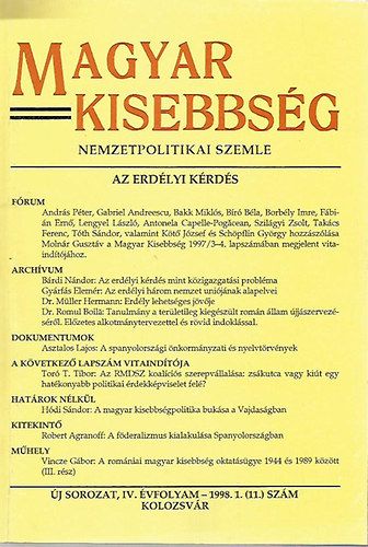 Archívum rovatunkban elmúlt korok ma is időszerű írásait szeretnénk újraközölni, akár a régi Magyar Kisebbség, akár más, hasonló jellegű kiadvány hasábjairól." Forrás: Tamás Sándor: Tisztelt olvasó! Magyar Kisebbség - 1. sz. = 1. évf. (1995) 1. sz.
