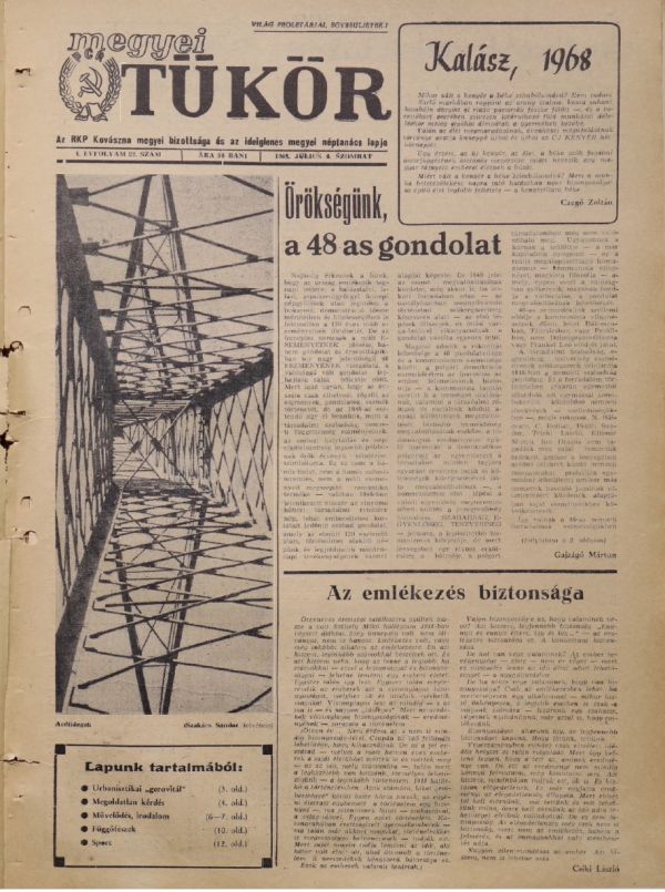 1968 februárjának végén, Románia közigazgatási átszervezésekor, az egykori Háromszék területén létrehozott Kovászna megye hetilapjaként indult, felvállalva a Sepsiszentgyörgyön egykor megjelent lapelődök, így a Székely Nép örökségét. Alapító főszerkesztője, Dali Sándor korábban az Ifjúmunkás főszerkesztője volt, s ez döntő módon meghatározta az új lap munkatársi gárdájának kialakulását fiatal írókból-költőkből, akik egy-két esztendővel korábban fejezték be egyetemi tanulmányaikat. Periodicitása változó, székhelye Sepsiszentgyörgy. Utódlap: Háromszék. A lap történetéről bővebben itt.