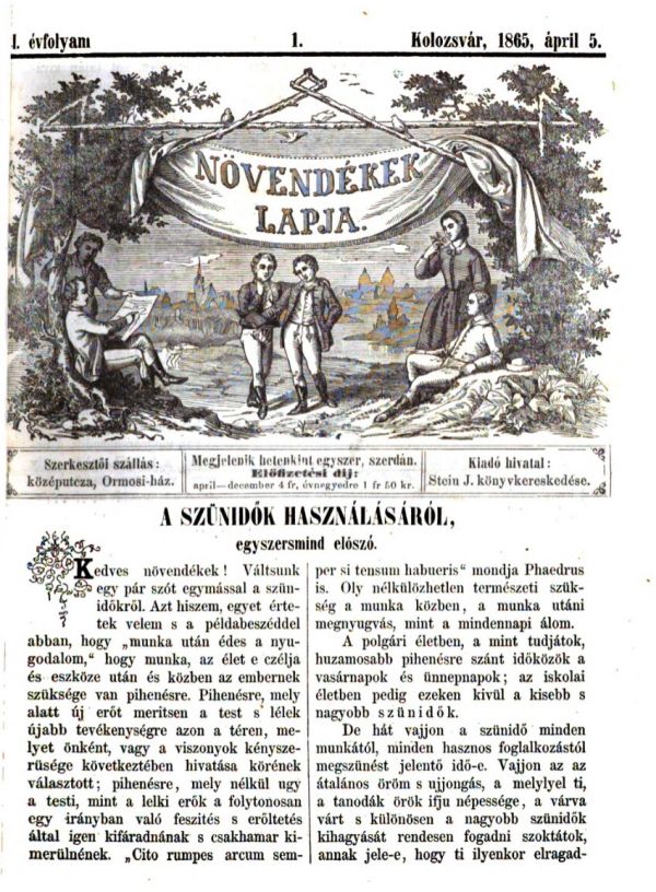 Alapította Kolozsváron 1865 áprilisában Réthy Lajos (vámosgálfalvi, szül. 1840-ben Erdőcsinádon) ám ugyanazon év végén megszűnt. Megjelenése előtt a Nefelejcs, valószínűleg egyenesen Réthytől értesülve, így jellemezte a lap szándékát: „a növendékek hasznos mulattatása, hogy szerezzék meg a tudást és vágyjanak utána, hogy lelkök nemesedjék ős képzelmök irányt nyerjen, hogy a jellemképzödéshez némi anyagot szolgáltasson és fölőpülésót elősegítse.“ (Lásd Nefelejts, 1865.02.05, 7. oldal). Lapkiadó: Stein János.