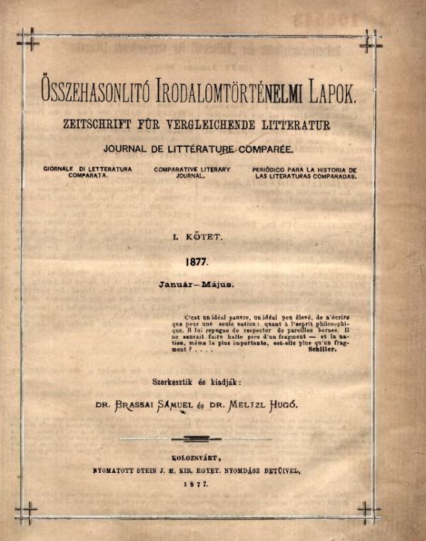 Az összehasonlító irodalomtudomány első erdélyi teoretikusa Meltzl Hugó volt, aki németországi tanulmányai idején ismerkedett meg e diszciplínával, s kolozsvári professzortársával, Brassai Sámuellel összefogva 1877-ben megindította Kolozsvárt a világ első komparatista folyóiratát (Összehasonlító Irodalomtörténelmi Lapok – Acta Comparationis Litterarum Universarum), melyet 1883-tól az 1888-as megszűnésig egyedül szerkesztett. Nemzetközi jellegét azzal is hangsúlyozni kívánták, hogy több mint 20 nyelven közöltek tanulmányokat, versfordításokat, híranyagot. Támogatták a Petőfi- és Schopenhauer-kultuszt, a népköltészeti hatáskutatást. A folyóirat munkatársai valamennyi kontinenst képviselték. 1884-ben még egy Összehasonlító Irodalmi Társulat megszervezésére is kísérletet tettek. Forrás és értelmezés.