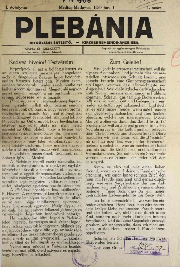 1930-ban Medgyesen megjelent és mindössze 12 lapszámot megért római-katolikus, kétnyelvű (magyar-német) hitközségi értesítő. Előbb Máthé Benvenut, majd Kelemen Ágoston ferencesrendi szerzetes szerkesztette. A lap történetéről bővebben itt.
