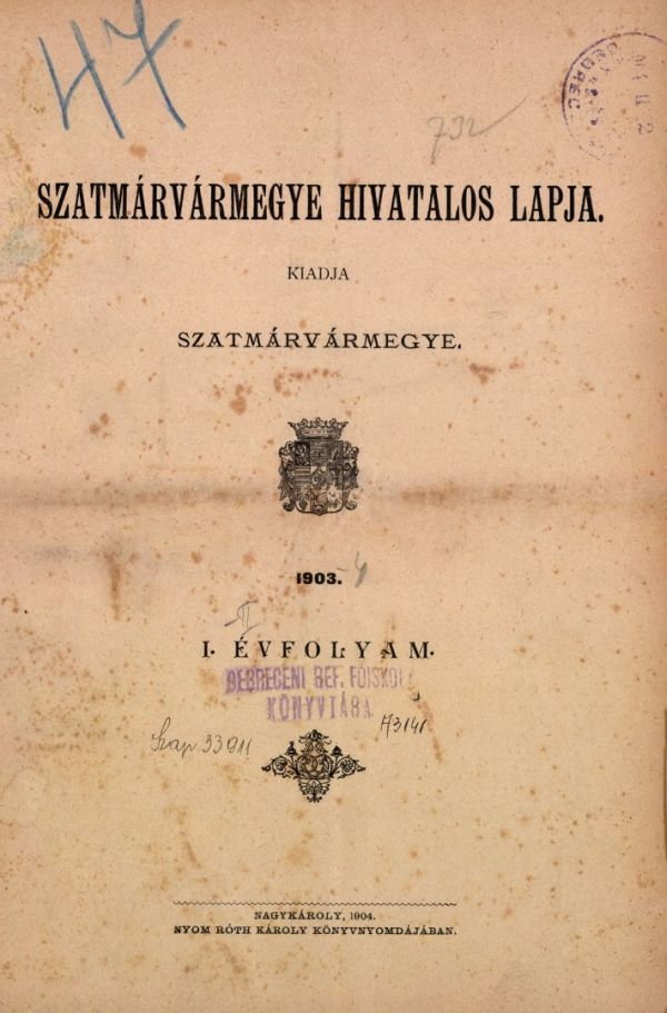 Szatmár vármegye hivatalos közlönye, megjelent hetente Nagykárolyban, felelős szerkesztő Kerekes Zsigmond vármegyei aljegyző, később tiszteletbeli főjegyző.