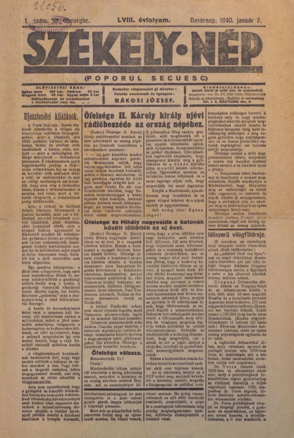 Az első világháború után nehézkesen indult újra a lapkiadás Háromszéken. A sepsiszentgyörgyi Székely Nép állt legelőbb lábra, 1919-től folyamatosan jelent meg 1944-ig, előbb hetente kétszer (csütörtökön és vasárnap), majd 1932-től csak vasárnaponként. Az 1940–1944 időszakban Sepsiszentgyörgyön „civil” lapként csupán a Székely Nép független politikai hetilap jelent meg folyamatosan. A lap történetéről bővebben itt és itt.